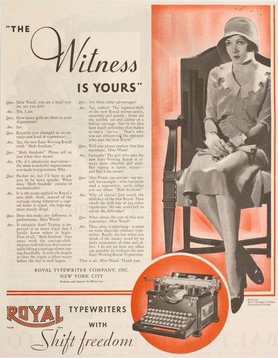 Werbeanzeige für Schreibmaschine Royal polychrom