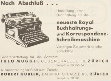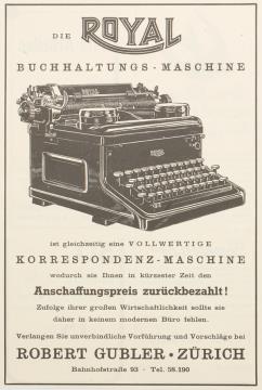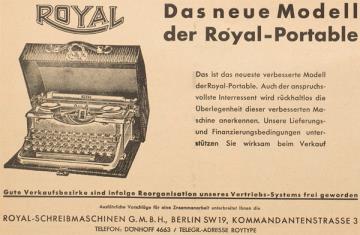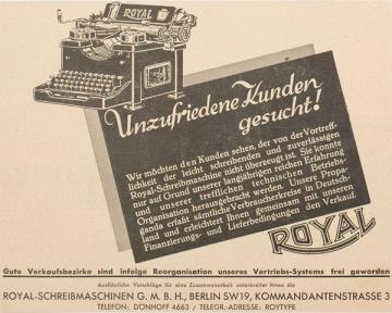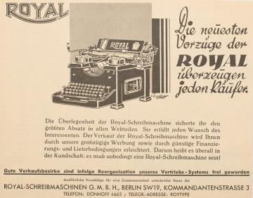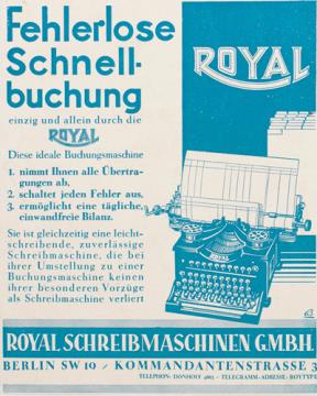 Werbeanzeige für Schreibmaschine Royal monchrom