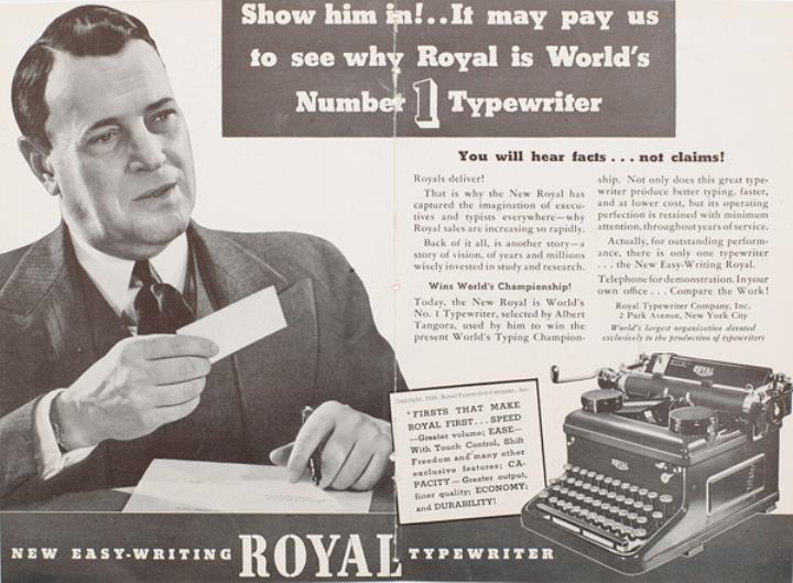 Werbeanzeige für Schreibmaschine Royal monchrom