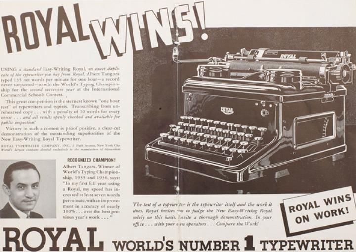 Werbeanzeige für Schreibmaschine Royal monchrom