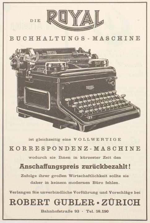 Werbeanzeige für Schreib- und Buchungsmaschine Royal monchrom