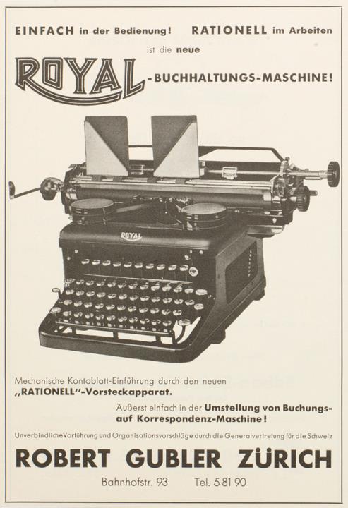 Werbeanzeige für Schreib- und Buchungsmaschine Royal monchrom