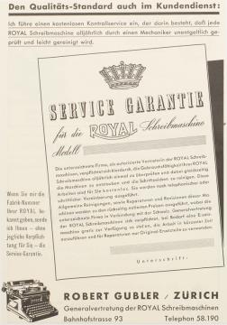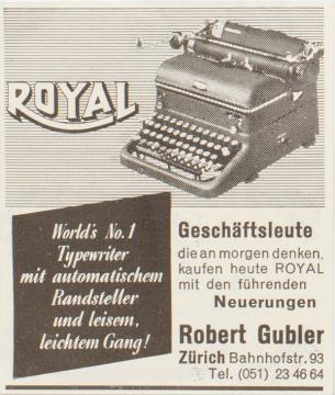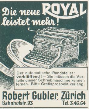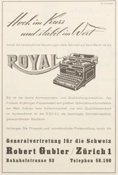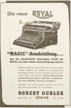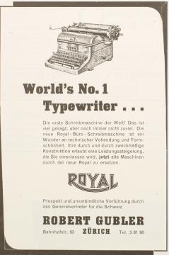 Werbeanzeige für Schreibmaschinen Royal monchrom