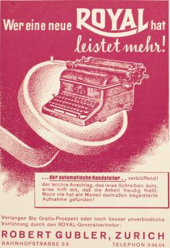 Werbeanzeige für Schreibmaschine Royal monchrom