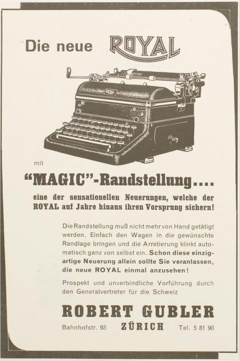 Werbeanzeige für Schreibmaschine Royal monchrom