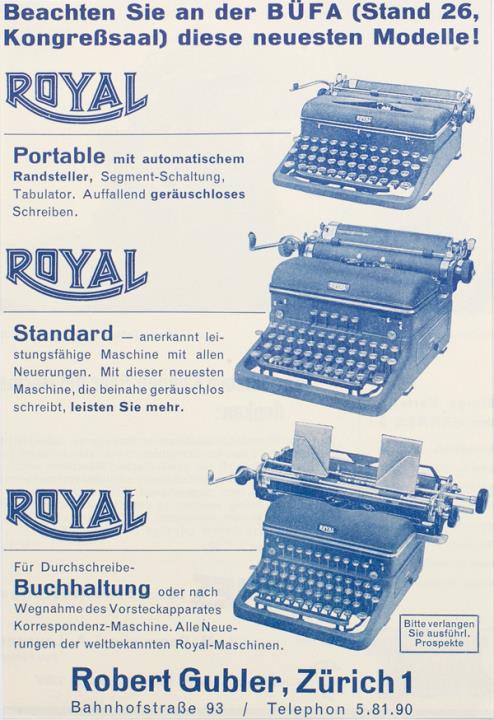Werbeanzeige für Schreibmaschinen Royal monchrom