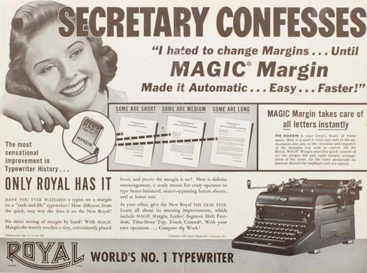 Werbeanzeige für Schreibmaschine Royal monchrom