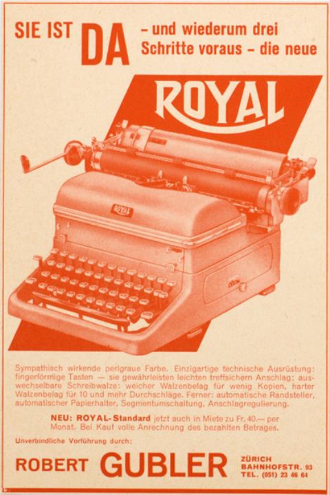 Werbeanzeige für Schreibmaschine Royal monchrom