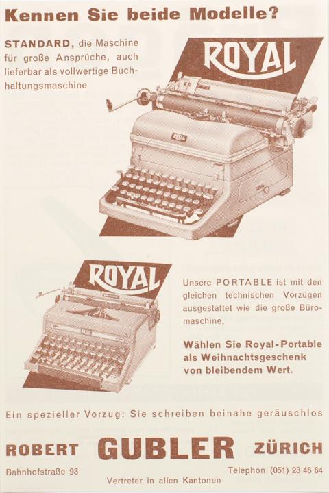Werbeanzeige für Schreibmaschine Royal monchrom