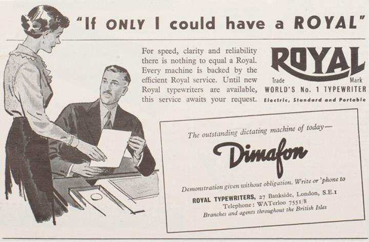 Werbeanzeige für Schreibmaschine Royal monchrom