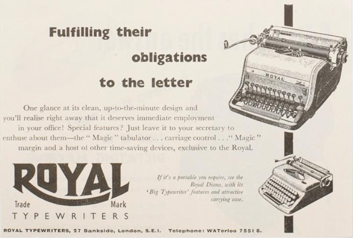 Werbeanzeige für Schreibmaschinen Royal monochrom