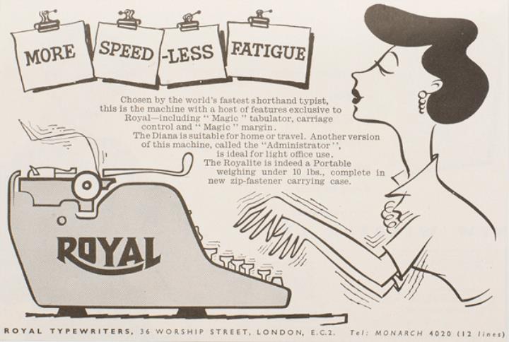 Werbeanzeige für Schreibmaschine Royal monochrom