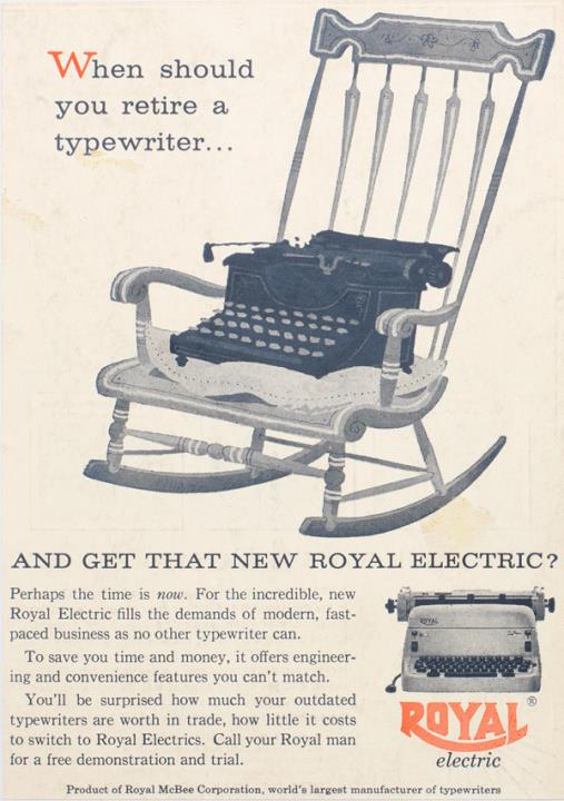 Werbeanzeige für Schreibmaschine Royal Electric polychrom