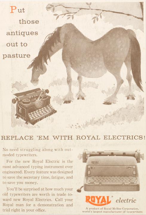 Werbeanzeige für Schreibmaschine Royal Electric polychrom