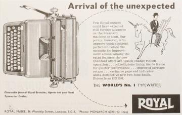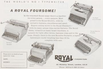 Werbeanzeige für Schreibmaschine Royal monochrom