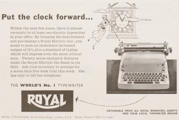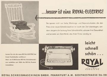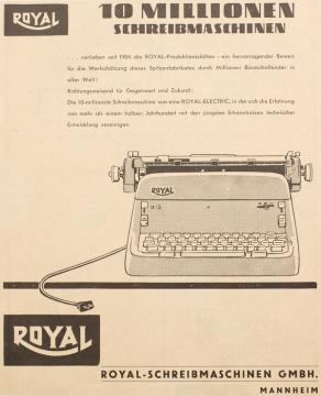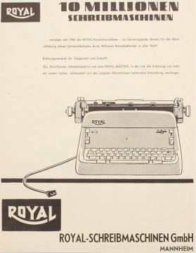 Werbeanzeige für Schreibmaschine Royal Electric monochrom
