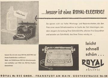 Werbeanzeige für Schreibmaschinen Royal monochrom