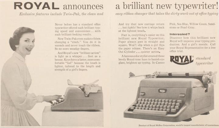 Werbeanzeige für Schreibmaschine Royal monochrom