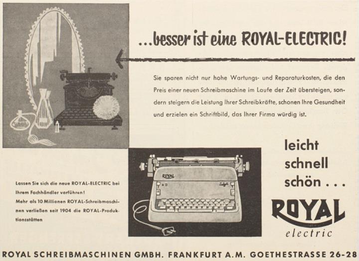 Werbeanzeige für Schreibmaschine Royal Electric monochrom