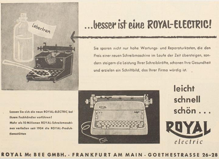 Werbeanzeige für Schreibmaschine Royal Electric monochrom