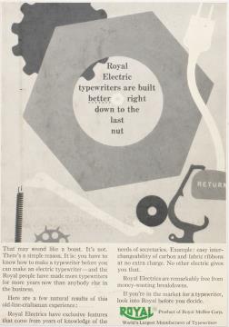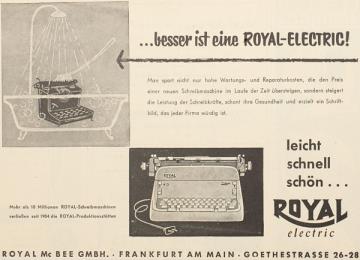 Werbeanzeige für Schreibmaschine Royal Electric polychrom