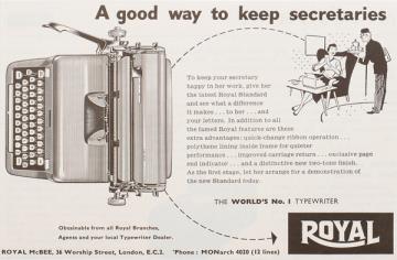 Werbeanzeige für Schreibmaschine Royal Royalite monochrom