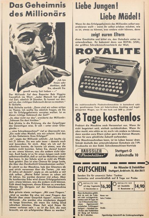 Werbeanzeige für Schreibmaschine Royal Royalite monochrom