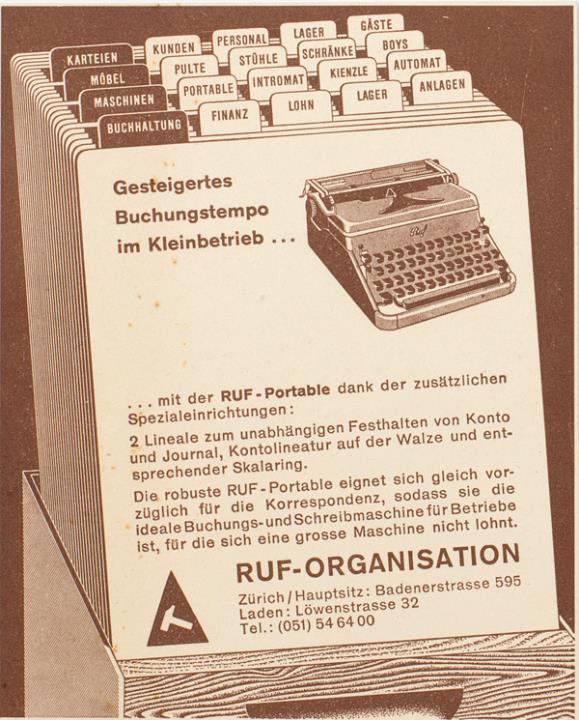 Werbeanzeige für Schreib- und Buchungsmaschine Ruf monochrom