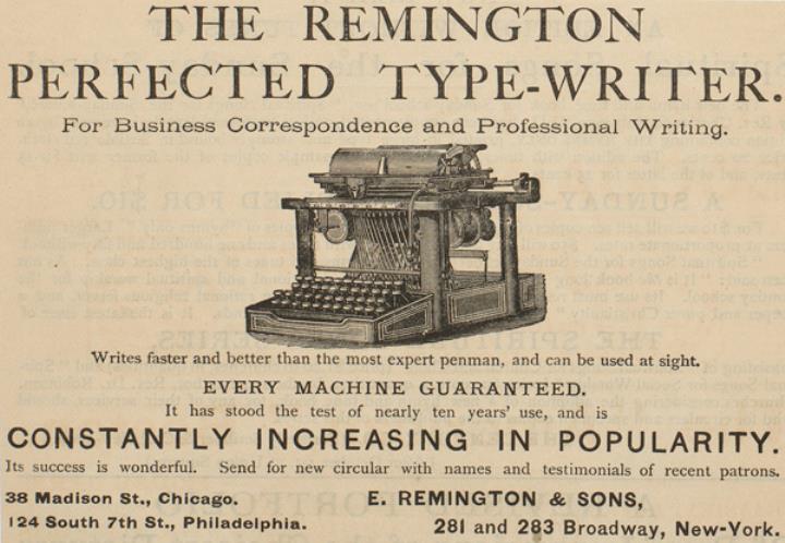 Werbeanzeige für Schreibmaschine Remington monochrom