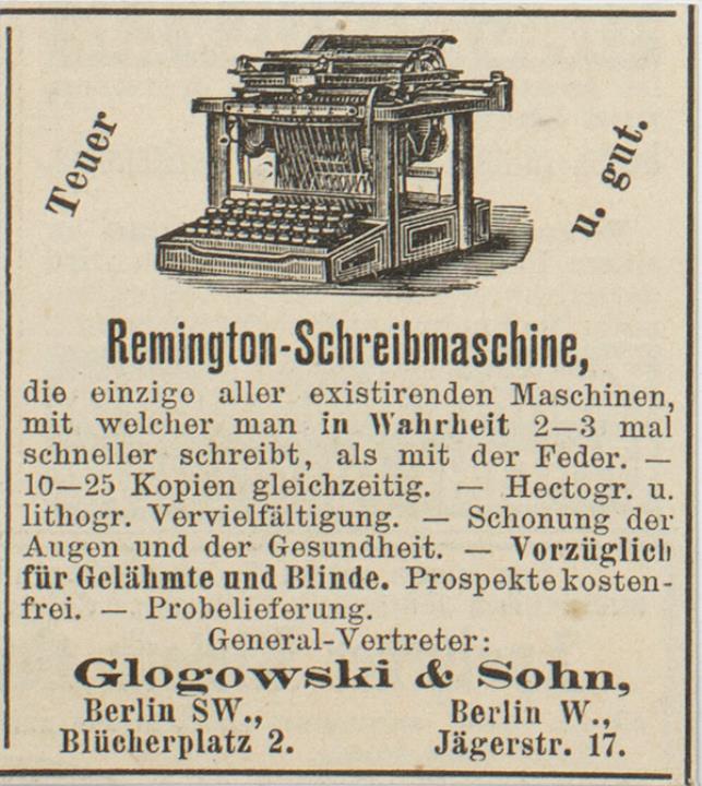 Werbeanzeige für Schreibmaschine Remington monochrom