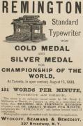 Paris 1889 Goldene Medaille. Remington Schreibmaschine Nro. 5
