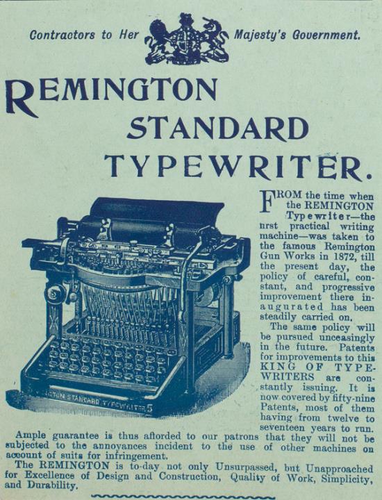 Werbeanzeige für Schreibmaschine Remington monochrom