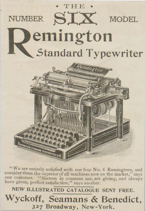 Werbeanzeige für Schreibmaschine Remington 6; auf Karton geklebt monochrom