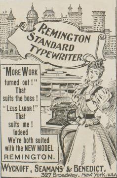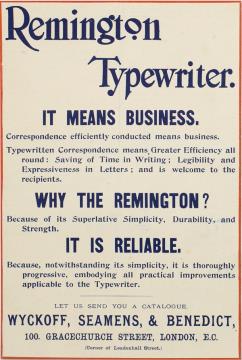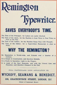 Werbeanzeige für Schreibmaschine Remington; auf Karton geklebt monochrom