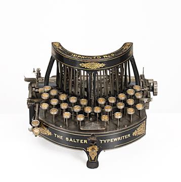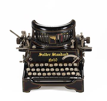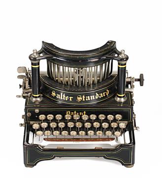 Schreibmaschine Salter Visible Standard Eigenschaften: Typenhebel, Oberanschlag, einfache Umschaltung, Farbband Tastatur: universal, vierreihig, 42 Schreibtasten Konstrukteur: James Samuel Foley, John Henry Birch Besonderheit: Typenhebelsegment im 45° Winkel gelagert