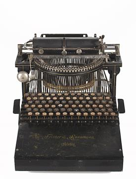 Schreibmaschine Frister & Rossmann Eigenschaften: Typenhebel, Unteranschlag, Volltastatur, Farbband Tastatur: ideal, sechsreihig, 78 Schreibtasten, kyrillisch Konstrukteur: George Washington Newton Yost, Franz Xaver Wagner, James Densmore, Walter J. Barron Besonderheit: autorisierter Nachbau der Caligraph; Tastenhebel aus Holz, seitliche Leertasten
