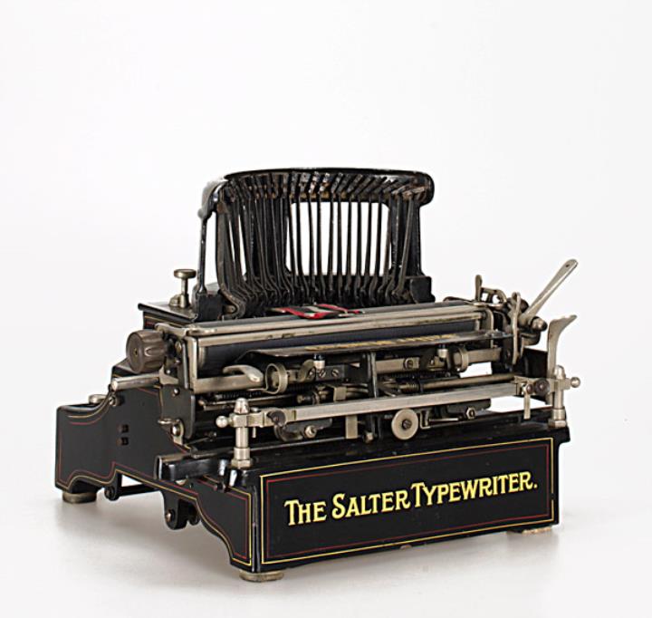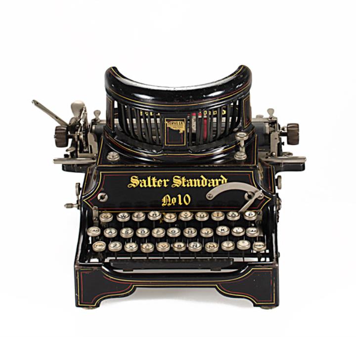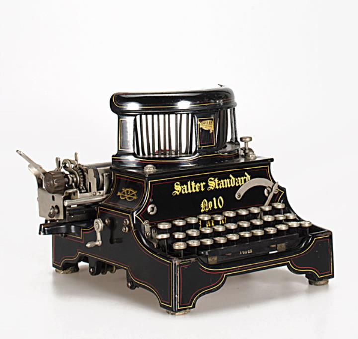 Schreibmaschine Salter Modell 10 Eigenschaften: Typenhebel stehend, Oberanschlag, doppelte Umschaltung, Farbband Tastatur: universal, dreireihig, 28 Schreibtasten Konstrukteur: James Samuel Foley, John Henry Birch, Seriennummer 17423