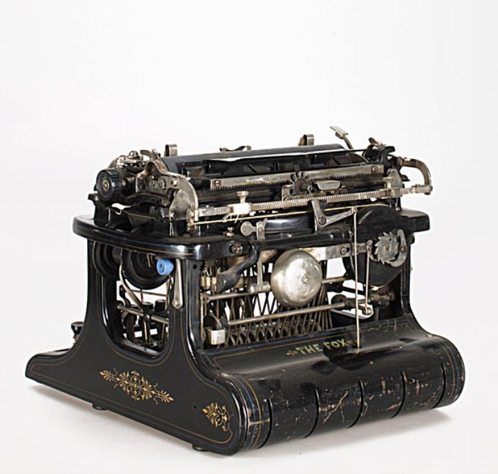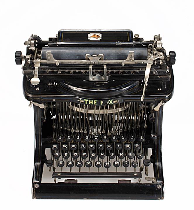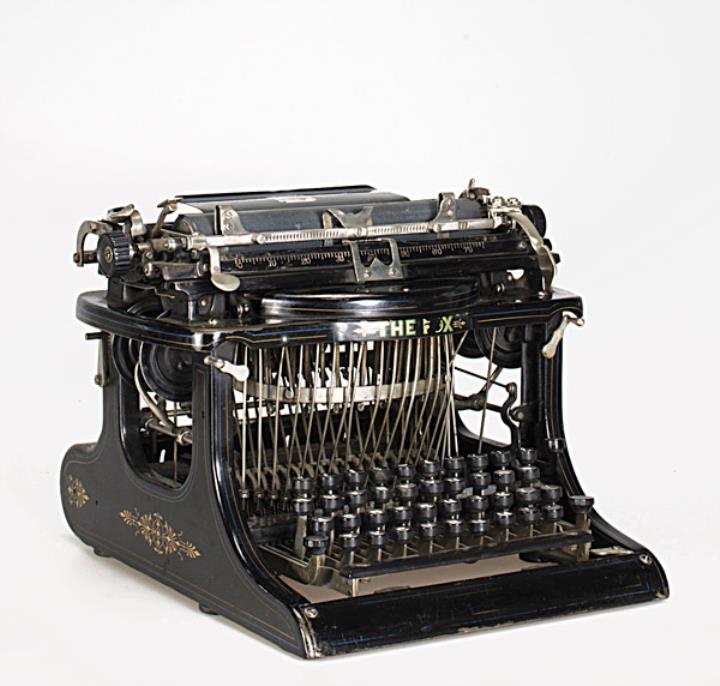 Schreibmaschine Fox Modell 3 Eigenschaften: Typenhebel, Unteranschlag, einfache Umschaltung (Walze), Farbband Tastatur: universal, vierreihig, 39 Schreibtasten Konstrukteur: Glenn J. Barrett, William Ross Fox Besonderheit: Tastenhebel aus Aluminium, Seriennummer 8028