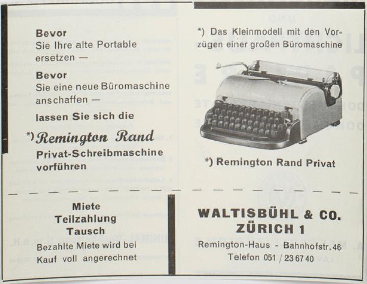 Werbeanzeige für Schreibmaschine Remington Rand Privat monochrom