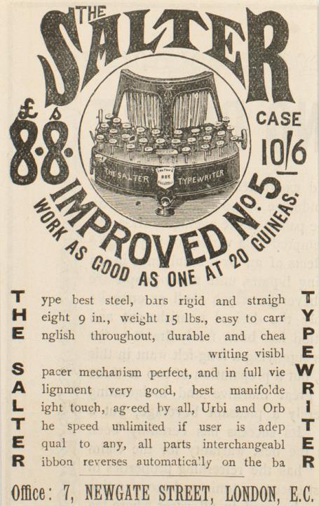 Werbeanzeige für Schreibmaschine Salter monochrom