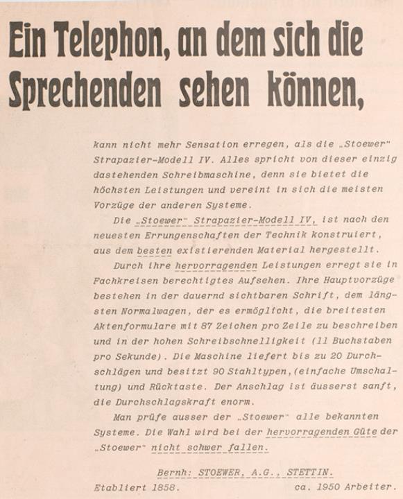 Werbeanzeige für Schreibmaschine Stoewer monochrom