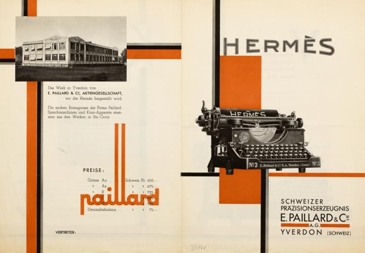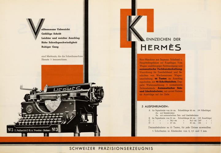 Faltprospekt für Schreibmaschine Hermes 3 Schweizer Präzisionserzeugnis