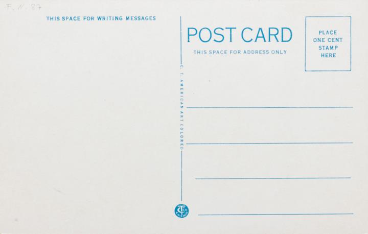 Illustrierte Postkarte; Grafik, polychrom; Nr. 117103 Rückseite: Außenansicht der Schreibmaschinenwerke Woodstock Vorderseite nicht beschrieben
