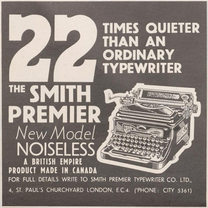 22 Times Quieter Than An Ordinary Typewriter Smith Premier Noiseless