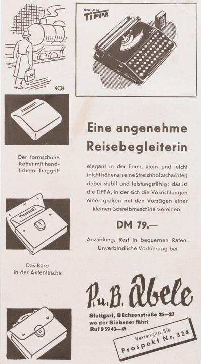 Werbeanzeige für Reiseschreibmaschine Gossen Tippa monochrom
