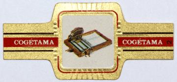 Zigarrenbanderole einer Serie (Cogétama); polychrom Nr. 5/24. Blindenschreibmaschine Hall, 1892