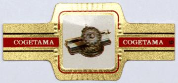 Zigarrenbanderole einer Serie (Cogétama); polychrom Nr. 6/24. Eintasterschreibmaschine Lambert, 1896