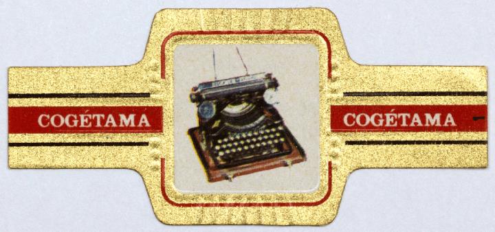 Zigarrenbanderole einer Serie (Cogétama); polychrom Nr. 1/24. Schreibmaschine Stoewer Elite, 1914