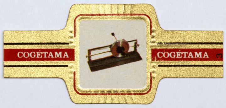 Zigarrenbanderole einer Serie (Cogétama); polychrom Nr. 3/24. Eintasterschreibmaschine Cox, 1860