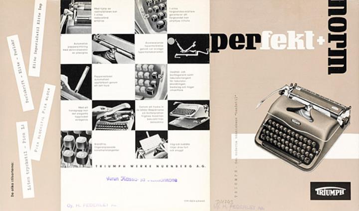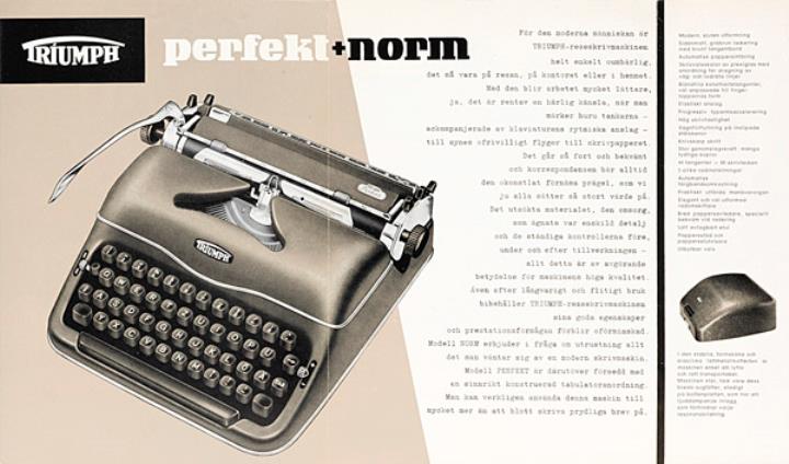 Faltprospekt für Schreibmaschine Triumph Perfekt und Norm den moderna människans "handstil" Nr. 1199/456/n swed.
